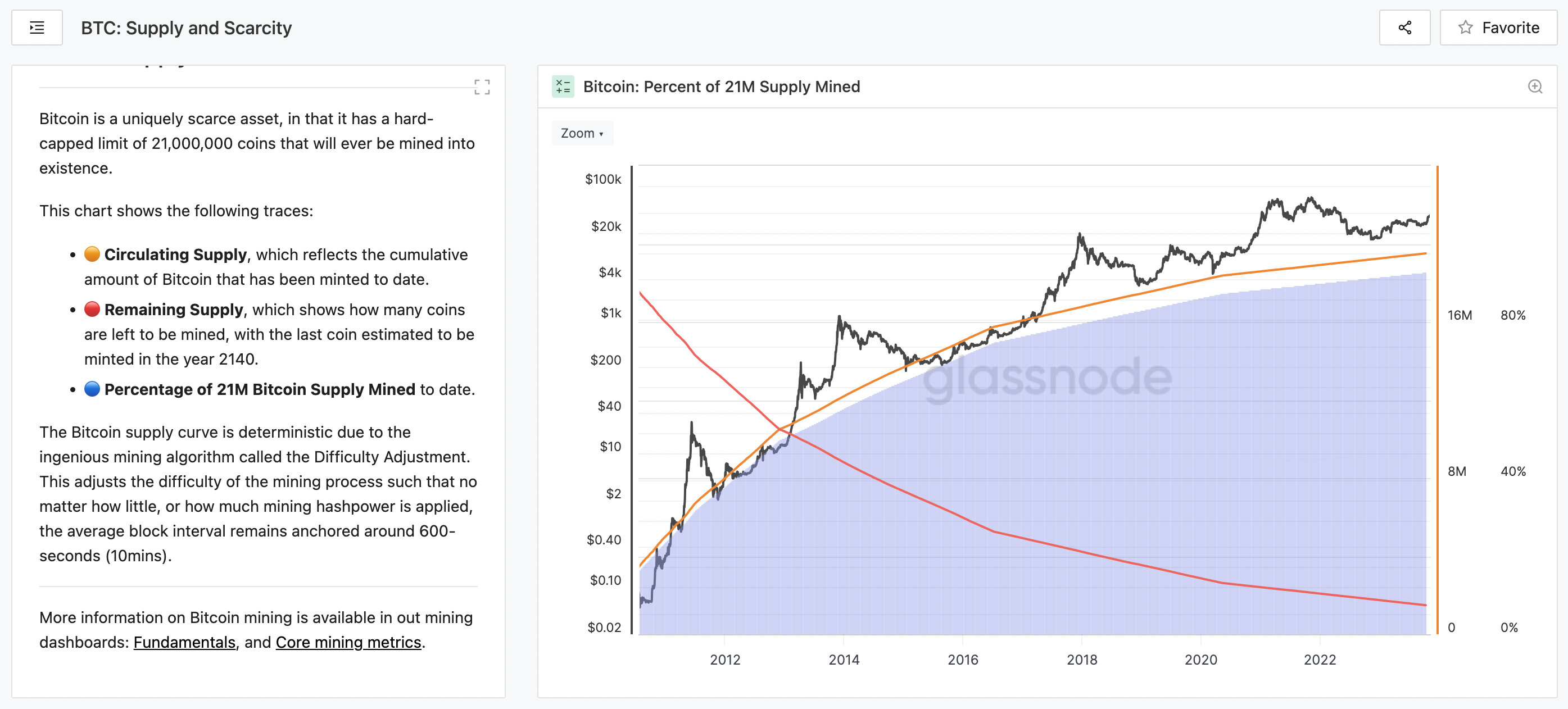 Due to Bitcoin’s automatic 'Difficulty Adjustment'mining algorithm component, it’s supply curve is deterministic. This adjusts the difficulty of the mining process such that no matter how little or how much mininghash power is applied, the average block interval remains anchored for around 600 seconds or 10 minutes.