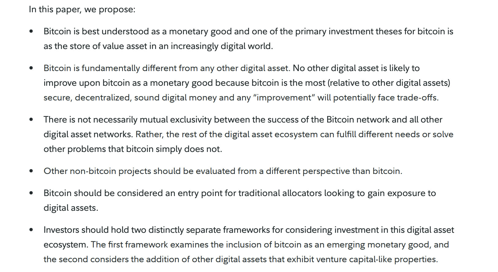 In October 2023, they released a report titled: Bitcoin First Revisited: about why investors need to consider Bitcoin separately from other digital assets. In it, they double down on why Bitcoin is unique from all other digital assets and belongs in its own category.