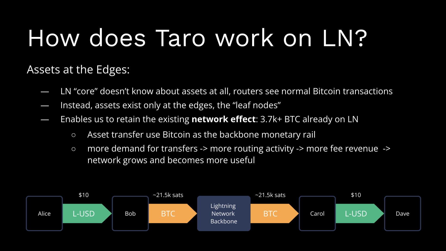 Taproot Assets leverages newly created assets and their transfers in an efficient and scalable manner. Multiple assets can be created and transferred in a single Bitcoin UTXO, while witness data is transacted and stored off-chain.
