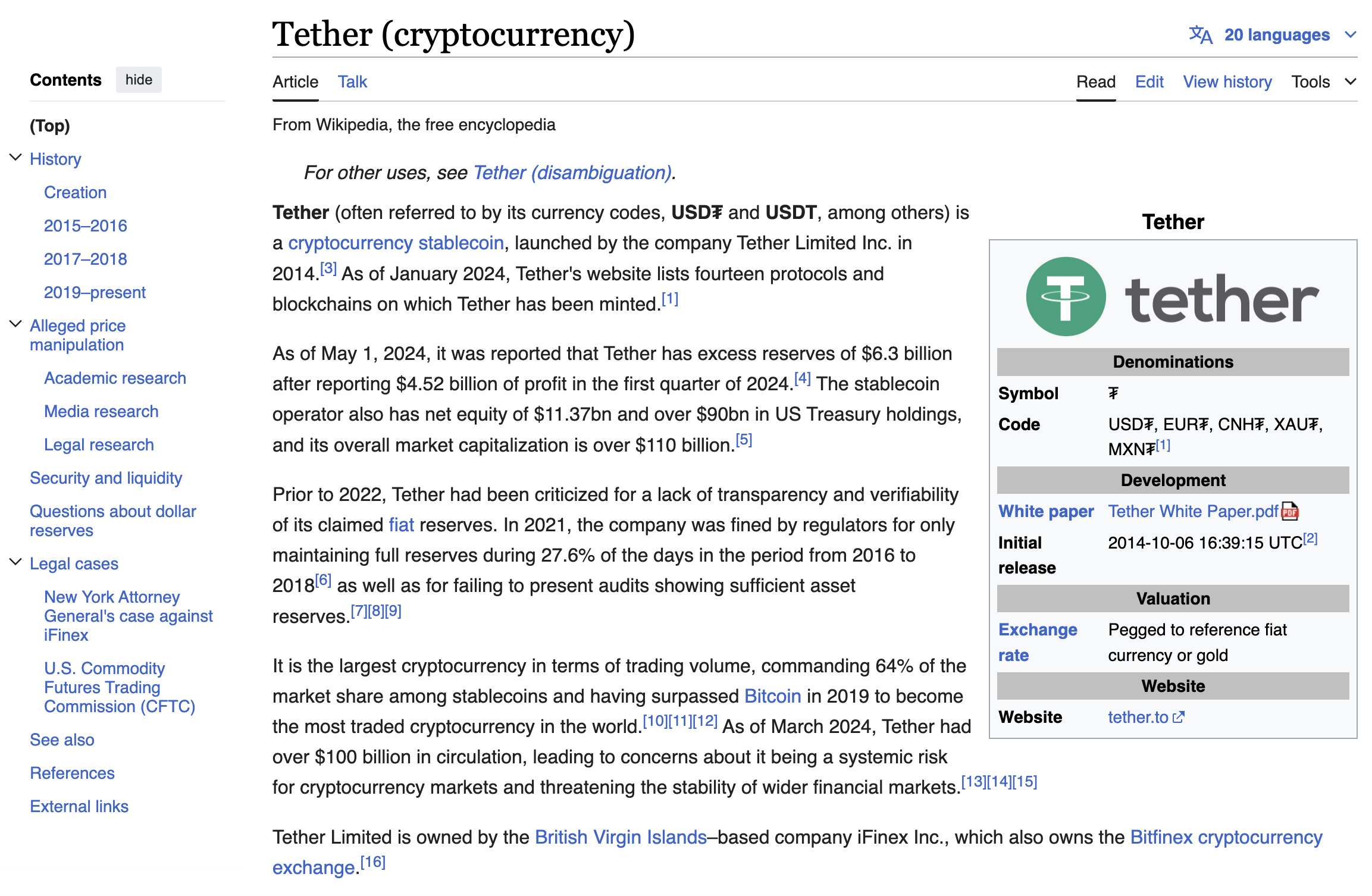 Tether buys U.S. Treasuries with that money and gives the people USDT tokens.