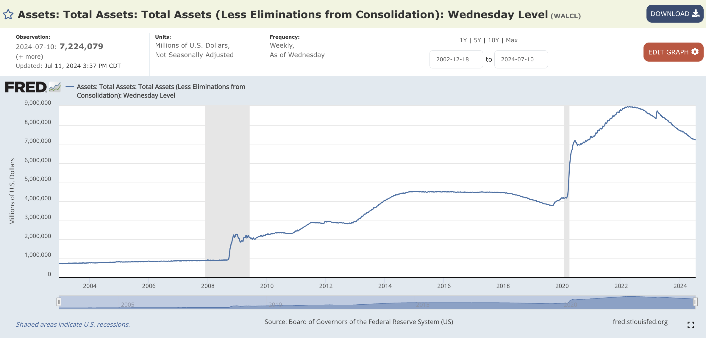 By contrast, the Fed’s balance sheet is approximately $7.2 trillion, and the U.S. money supply is about $21 trillion.