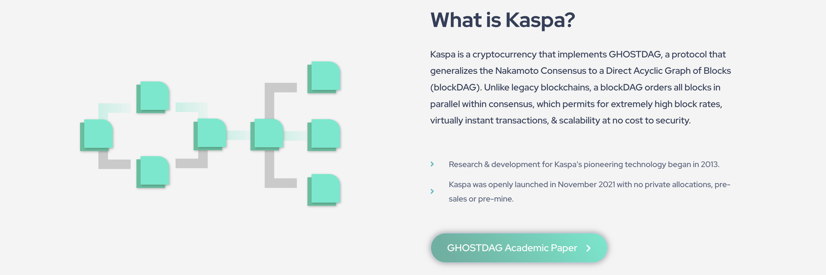 However, I believe Kaspa is a much more serious project than either. What is Kaspa?