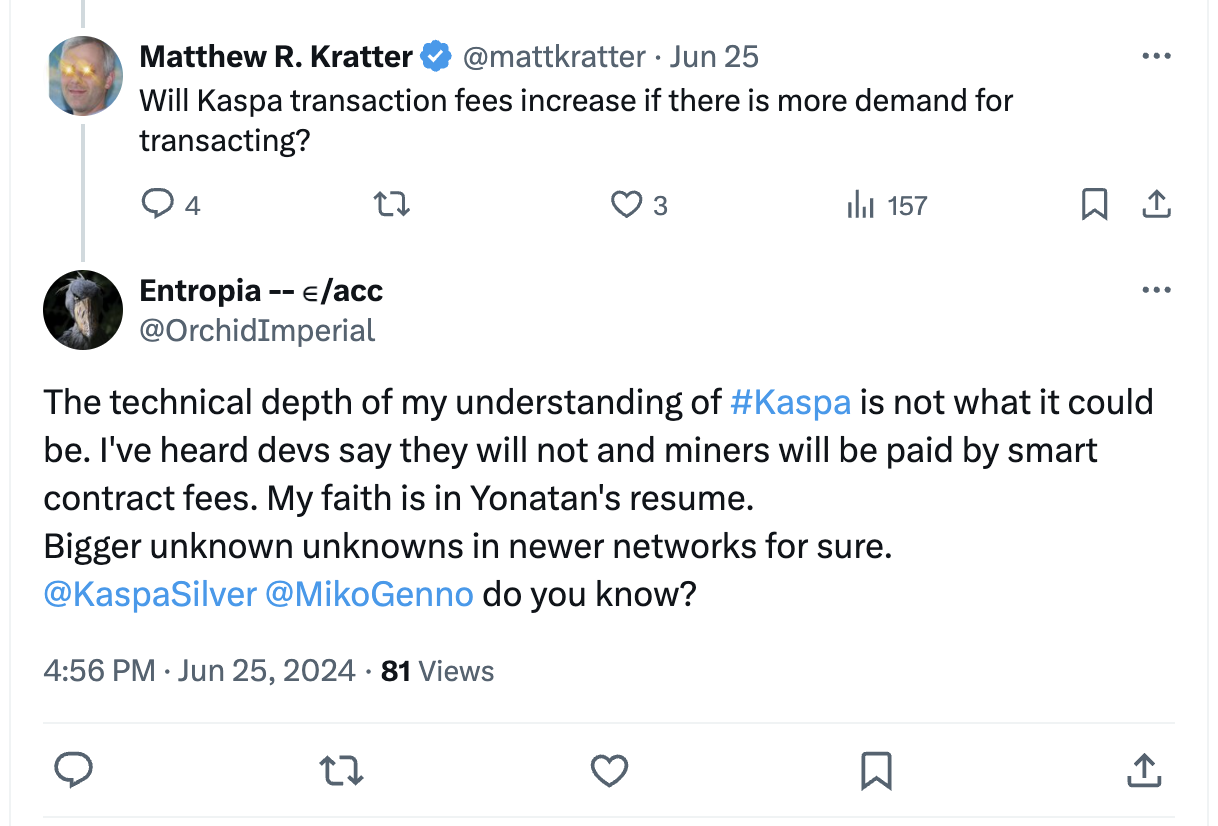 “So, Kaspa is silver to Bitcoin’s gold.”